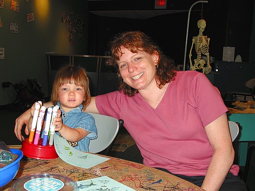 Linda helps Jay with an art project