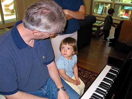 Jay admires Brian while he plays piano Sunday, June 16, 2002 CRW_1513 Picture 6 of 14 © Mark E. Siegel