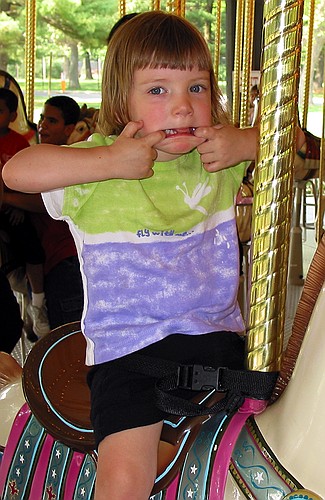 Jay makes a funny face on the carousel Saturday, June 29, 2002 CRW_1560 Picture 11 of 14 © Mark E. Siegel