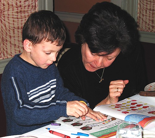Aunt Rosanne helps Jennifer count at dinner Sunday, December 01, 2002 CRW_2512 Picture 2 of 18 © Mark E. Siegel