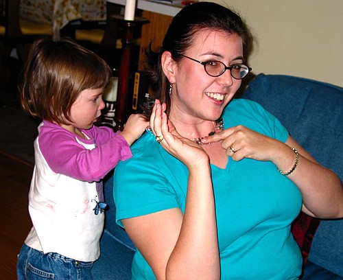 Jay helps Susie put on some costume jewelry Tuesday, December 31, 2002 CRW_2803 Picture 3 of 60 © Mark E. Siegel