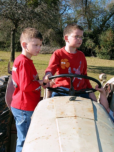Joseph and Jennifer climb up on the tractor Wednesday, January 01, 2003 CRW_2848 Picture 10 of 60 © Mark E. Siegel