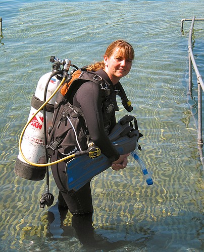 Shana waits with her gear