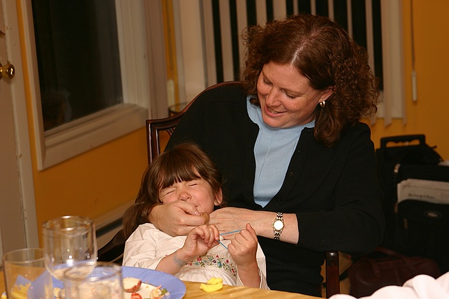 Aunt Linda tries to get Jay's hair into braids Friday, May 14, 2004 CRW_7537 Picture 20 of 52 © Mark E. Siegel