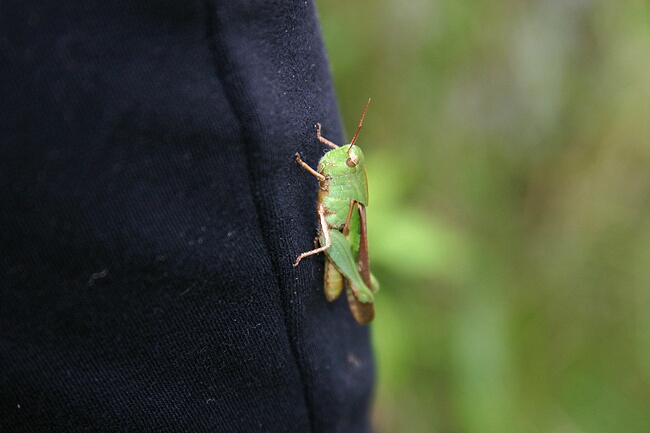 A grasshopper sits on Jay's leg Friday, October 08, 2004 crw_2518 Picture 21 of 56 © Mark E. Siegel