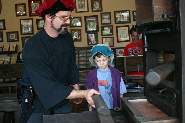Jennifer learns about the printing press Saturday, October 09, 2004 crw_2679 Picture 34 of 56 © Mark E. Siegel