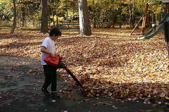Joe helps clear the leaves